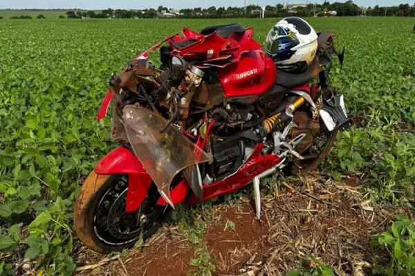 Motociclista de Cascavel sofre acidente na PR-182 em Maripá; A moto parou em uma lavoura de soja