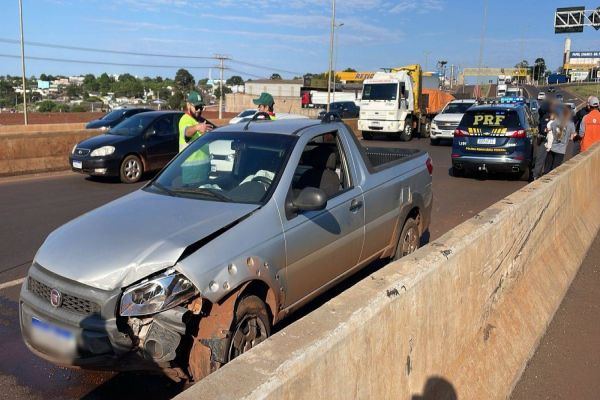 Um acidente envolvendo um caminhão e um Fiat Strada causou congestionamento no Trevo Cataratas na manhã desta segunda-feira (28). A colisão ocorreu na pista que dá acesso às rodovias BR-369 e BR-277.