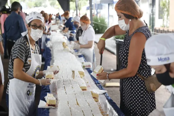 O preparo começará no sábado (9), com o trabalho intenso dos envolvidos. Para esse deleite, serão utilizados 200 quilos de farinha de trigo, 90 litros de água, 168 quilos de açúcar, 298 dúzias de ovos, 21 quilos de emulsificante, 9,5 quilos de fermento. 30 litros de guaraná para umedecer a massa e 120 quilos de recheio - doce de leite.