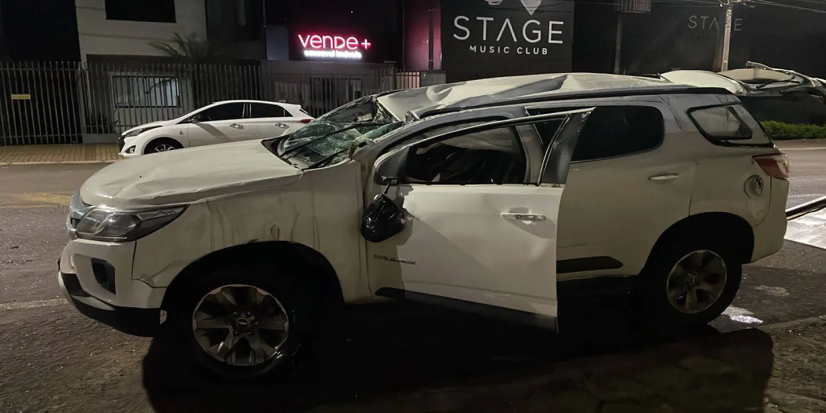 De acordo com informações, um veículo Trail Blazer capotou após colidir com um Sandero que transitava pela Rua Manoel Ribas. O impacto da colisão também atingiu um BMW que estava estacionado nas proximidades.