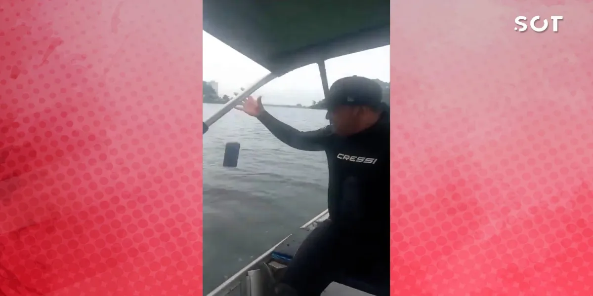 Em um vídeo que viralizou nas redes sociais, é possível ver o momento em que Gatto, visivelmente irritado, joga o iPhone de volta ao mar...