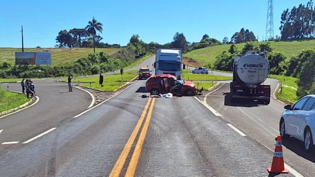 Flor da Serra do Sul – Um grave acidente envolvendo um caminhão e um automóvel tipo SUV foi registrado na manhã deste domingo (17), na rodovia BR-280, próximo ao trevo de acesso aos municípios de Flor da Serra do Sul e Salgado Filho. A colisão transversal ocorreu por volta das 7h30min, no quilômetro 300 da rodovia.