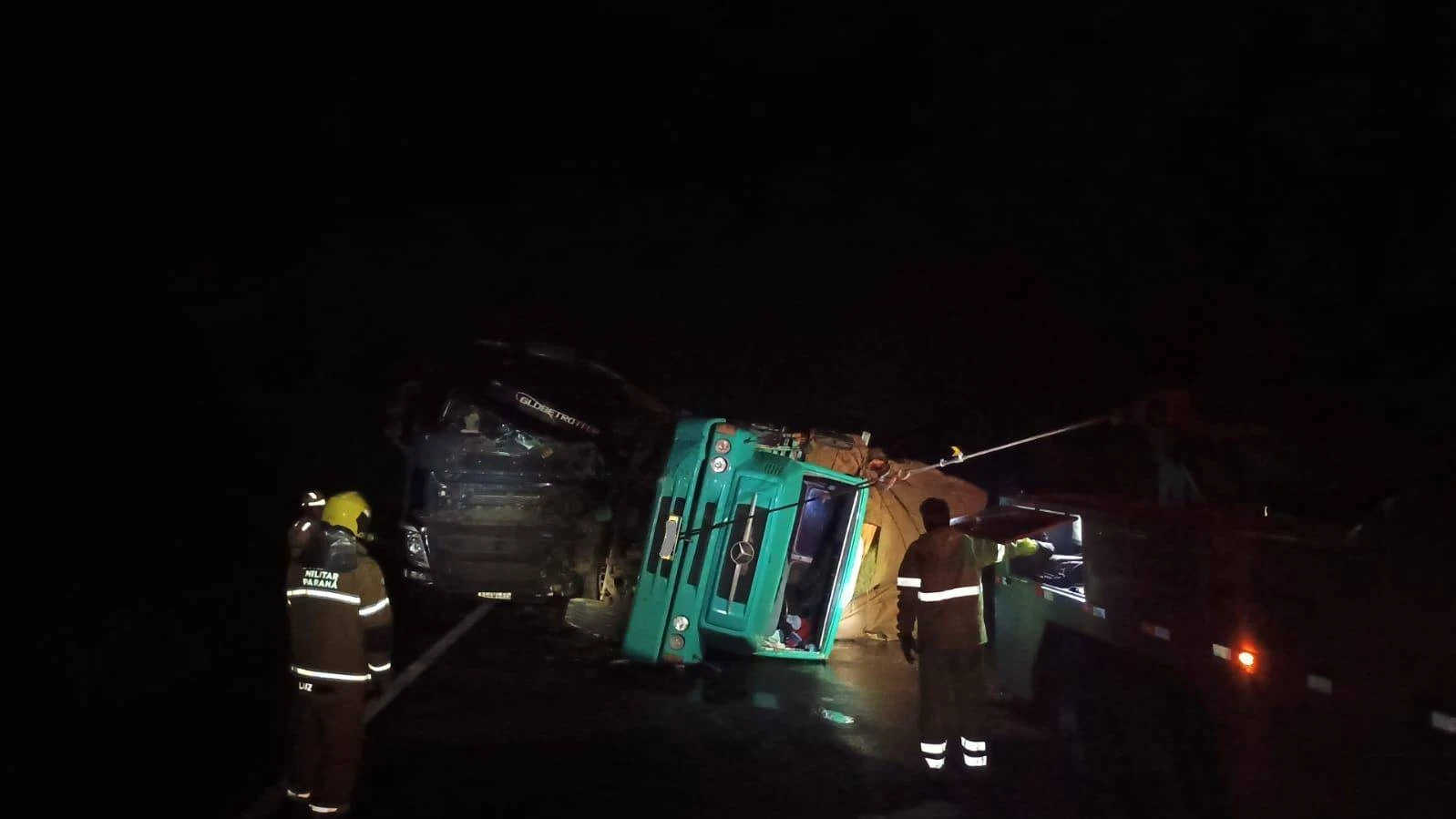 Um grave acidente de trânsito envolvendo três caminhões ocorreu na noite desta segunda-feira (18/11), por volta das 21h10, na BR-376, no quilômetro 529, em Ponta Grossa. A colisão, classificada como lateral seguida de tombamento, causou a interdição total da pista no sentido sul (Ponta Grossa x Curitiba) por algumas horas.