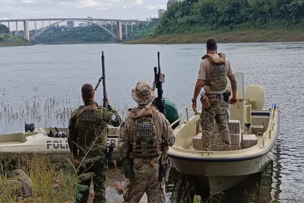 Foz do Iguaçu/PR - Policiais federais e militares apreenderam centenas de quilos de maconha, abandonadas na barranca do rio Paraná, em Foz do Iguaçu, na tarde da última sexta-feira (22/11), durante trabalho de repressão aos crimes transfronteiriços.