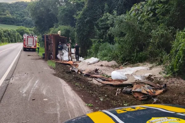 Um grave acidente envolvendo uma carreta carregada com fertilizantes foi registrado na tarde desta segunda-feira (03) na BR-277, no km 406, em Candói. O condutor do veículo, um homem de 44 anos, residente em Santa Helena, não resistiu aos ferimentos e morreu no local.