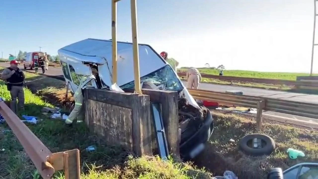 Segundo informações do Batalhão de Polícia Rodoviária (BPRv), a van, modelo Iveco Daily, seguia de Mogi das Cruzes (SP) em direção à Argentina, quando o motorista perdeu o controle do veículo e colidiu frontalmente contra uma mureta do canteiro central da rodovia. O impacto foi tão violento que a parte dianteira da van ficou completamente destruída.