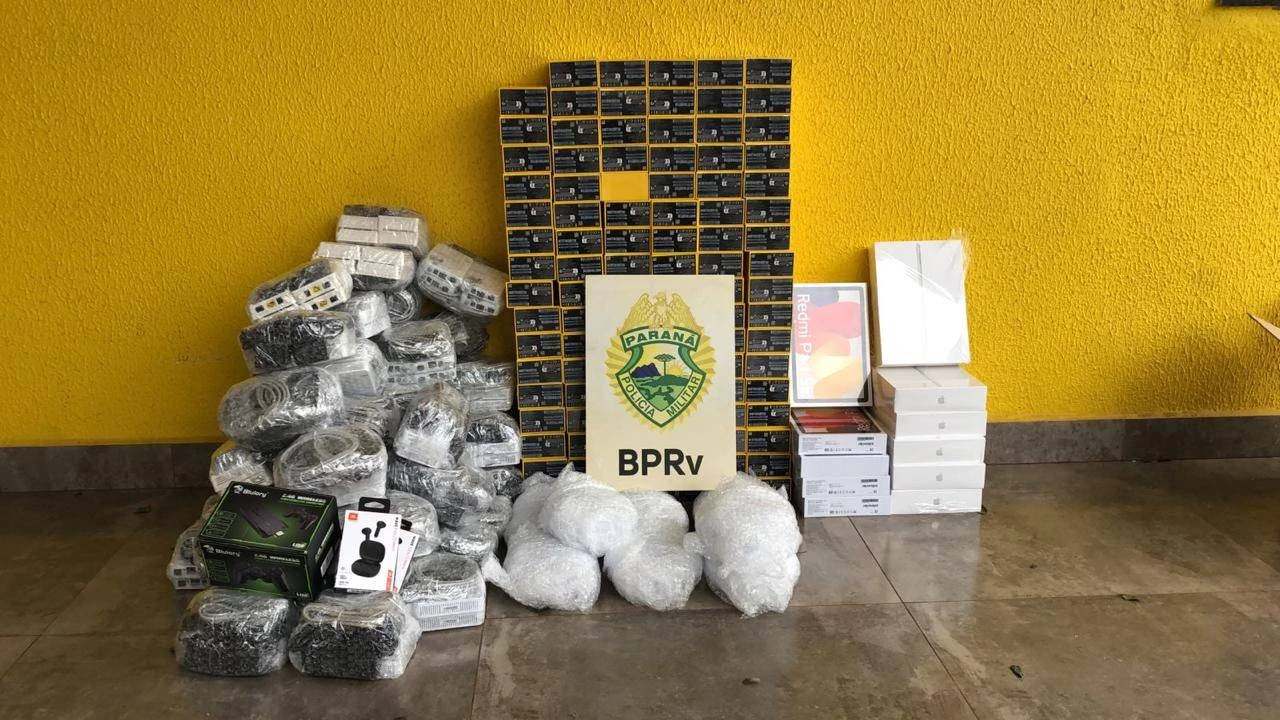 A apreensão ocorreu por volta das 04h50min, durante uma fiscalização de rotina na Rodovia Estadual PR-486, no município de Cascavel. Os policiais abordaram um Peugeot/307 com placas de Sarandi e, após vistoria, encontraram no porta-malas diversos equipamentos eletrônicos, como celulares, tablets, roteadores e fones de ouvido. Ao todo, foram contabilizados 335 itens, todos sem a documentação fiscal necessária para comprovar a importação legal.