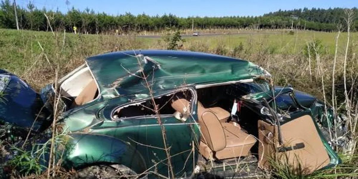 Depois de capotar, o veículo foi parar fora da pista em meio a vegetação.;;