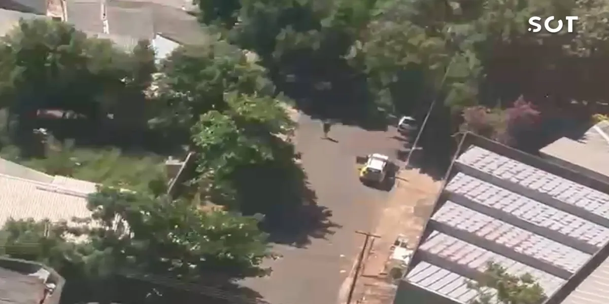 A ação teve início após um chamado reportando uma tentativa de roubo nas proximidades do Hotel Alvorada. A vítima, um homem que estava em seu veículo, foi baleada pelo suspeito. Diante da gravidade da situação, o helicóptero Falcão 13 foi acionado para dar apoio às equipes em terra.