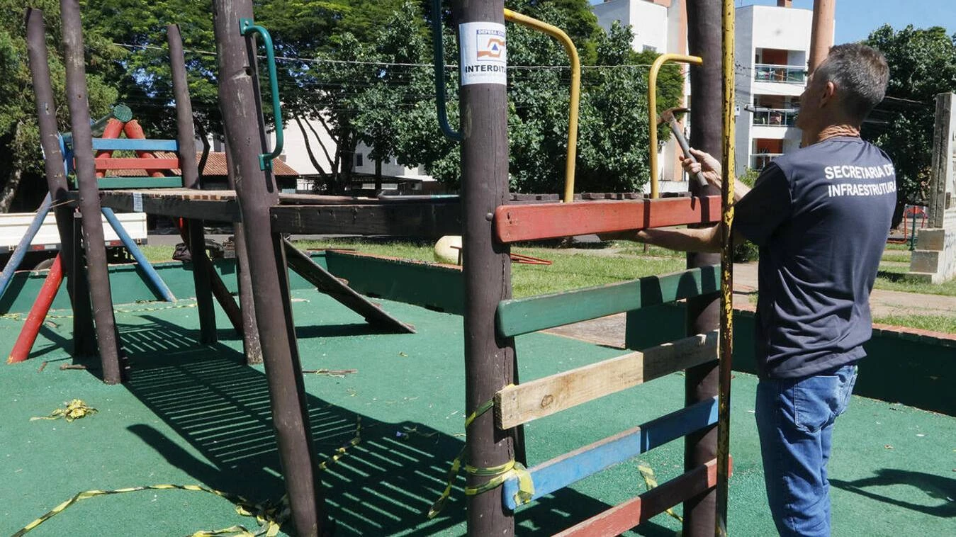 “Alguns dos ‘pés direitos’ que davam sustentação ao parquinho estavam desgastados e quase caindo, por isso resolvemos interditar o local, devido a possibilidade de a qualquer momento a estrutura cair e machucar quem estivesse utilizando o espaço”, comentou o diretor de paisagismo, espaços e parques públicos da Secretaria da Infraestrutura Rural e Urbana e de Serviços Públicos, José Roberto Inácio.