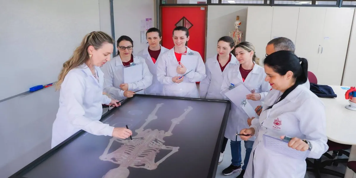A Medicina da PUCPR também oferece aos novos estudantes a possibilidade de acessar um modelo de aprendizado que emprega tecnologia de ponta desenvolvida pela própria PUCPR aplicada ao ensino de anatomia. Batizada de The Visible Human Table, a mesa interativa digital utiliza a Inteligência Artificial para construir modelos digitais fiéis à realidade, inclusive em escala, sendo possível aprofundar-se no conteúdo sobre cada órgão do corpo humano com o recurso das imagens ultrarrealistas.