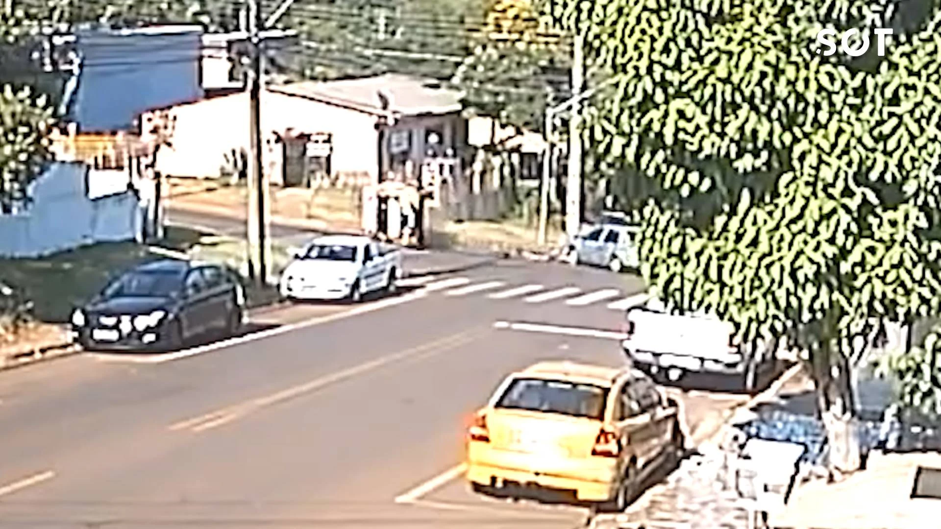 Nas imagens, é possível visualizar o veículo Clio transitando pela Rua Europa quando a viatura policial surge no cruzamento, vindo pela Rua Copacabana. Com o impacto da colisão, a viatura tombou às margens da via.