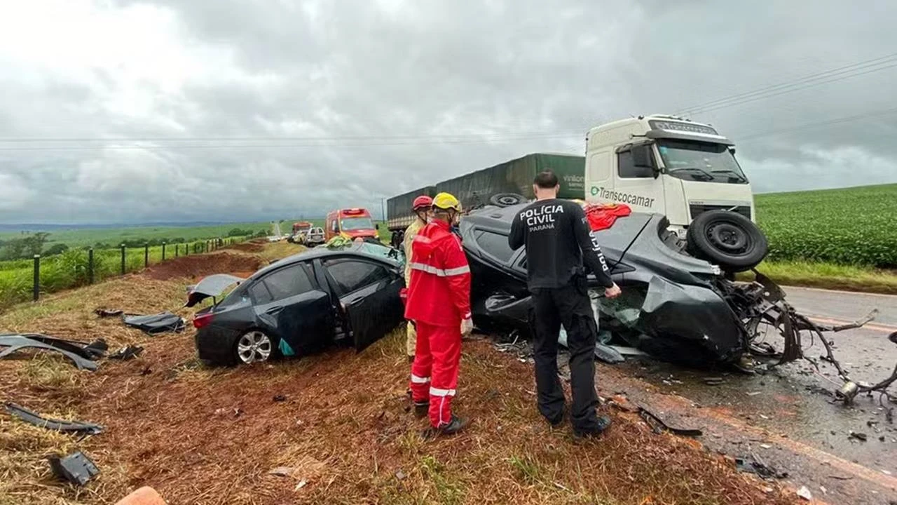 A dinâmica do acidente ainda está sendo investigada, mas a Polícia Rodoviária Estadual (PRE) suspeita que uma tentativa de ultrapassagem possa ter sido a causa da colisão, que ocorreu em um trecho de pista simples.