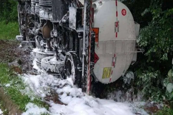 Devido ao tombamento, houve o vazamento de aproximadamente dois mil litros de gasolina aditivada, o que exigiu a presença do Corpo de Bombeiros para conter a situação e evitar maiores danos. O risco de explosão, em virtude do acúmulo de gases inflamáveis, levou as autoridades a interditar completamente o trecho da rodovia.