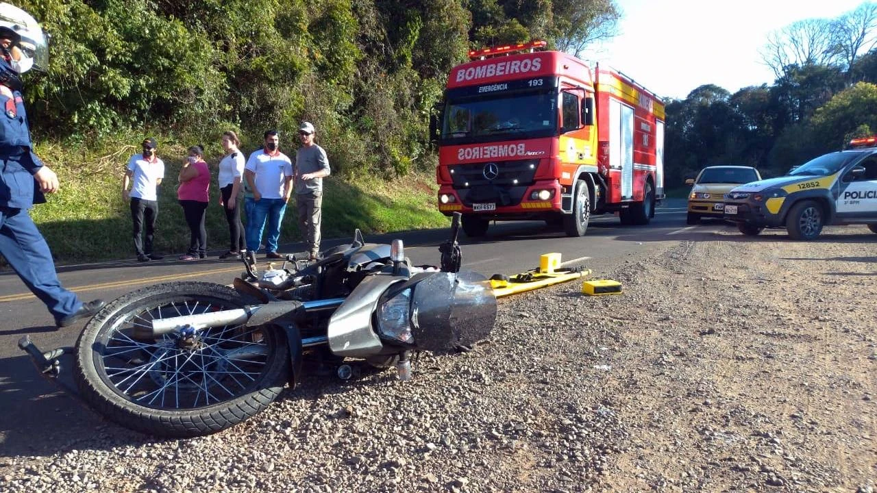 A colisão envolveu um caminhão com placas de Pato Branco (PR) e uma motocicleta com placas de São Lourenço do Oeste (SC).