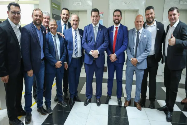 O presidente da Câmara, Tiago Almeida (Republicanos) e os vereadores Serginho Ribeiro (PSD), Xavier (Republicanos), Antonio Marcos (PSD), Edson Souza (MDB) e Mauri Schaffer (PSD), acompanharam a posse da nova mesa diretora da Assembleia Legislativa do Paraná (Alep) na capital, Curitiba.