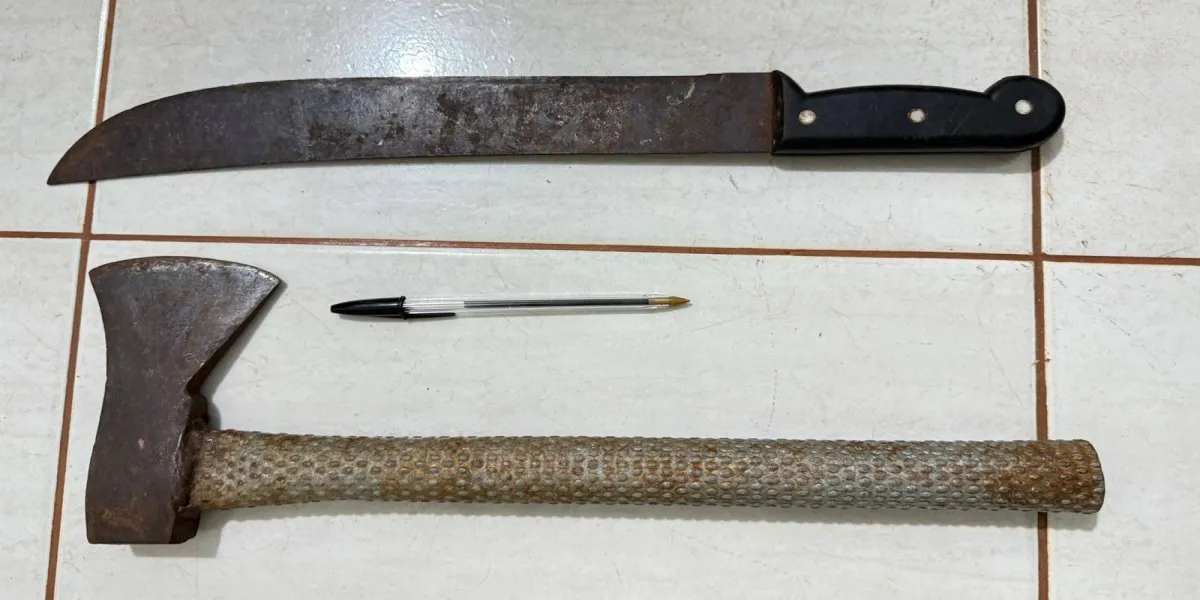 O autor das ameaças foi abordado pela equipe da RPA e, durante a revista em seu veículo, foram encontradas duas armas brancas: um facão e uma machadinha.