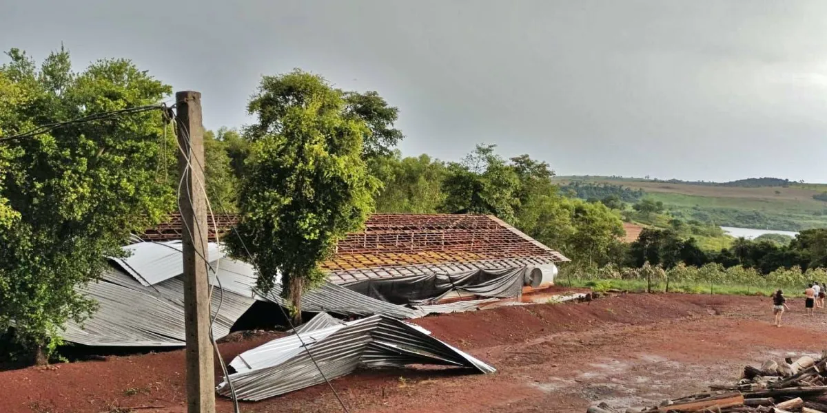 Um forte temporal atingiu a região da Linha Hortelã, interior de Capitão Leônidas Marques, na tarde da última sexta-feira (7), causando danos significativos em duas estruturas de aviários.