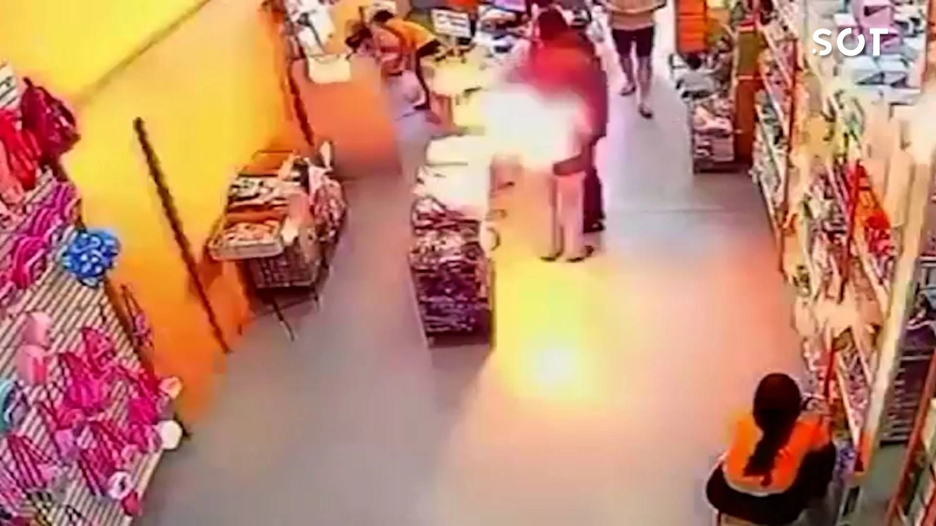 Imagens de uma câmera de segurança do estabelecimento mostram o momento exato da explosão. A mulher, que usava calça jeans e blusa branca, estava acompanhada do marido quando o aparelho, um Moto E32, explodiu violentamente no bolso traseiro da calça. Em pânico, ela tentou apagar o fogo, enquanto o marido e outras pessoas presentes no local correram para ajudá-la.