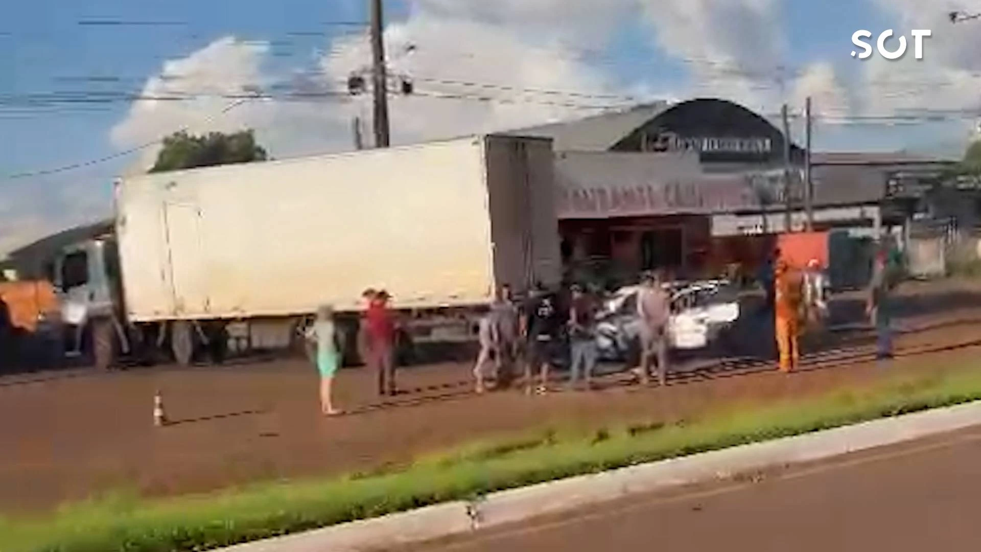 Um grave acidente de trânsito deixou uma mulher ferida na tarde desta terça-feira (11), na Marginal da Rodovia BR-277, em Santa Tereza do Oeste. A colisão envolveu um automóvel Gol e um caminhão baú.
