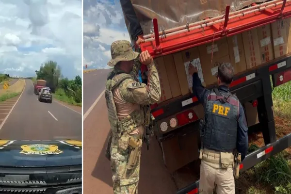Em uma ação cinematográfica, a Polícia Rodoviária Federal (PRF) conseguiu apreender uma carga de 450 mil maços de cigarros contrabandeados do Paraguai na tarde desta quinta-feira (13). A operação ocorreu no Km 218 da BR-163, em Cascavel, no Paraná.