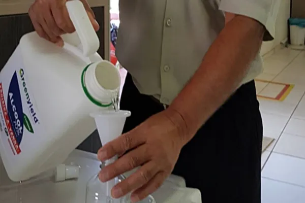Nilton levou até a filial uma embalagem plástica vazia de um litro, que ele mesmo encheu. “Esse gesto da cooperativa é importante, porque mostra a todos que devemos adotar cuidados para nos prevenirmos contra uma doença grave. Se todos fizermos a nossa parte, venceremos o desafio e mais rápido poderemos retornar com a normalidade de nossas vidas e empreendimentos”, diz o avicultor.