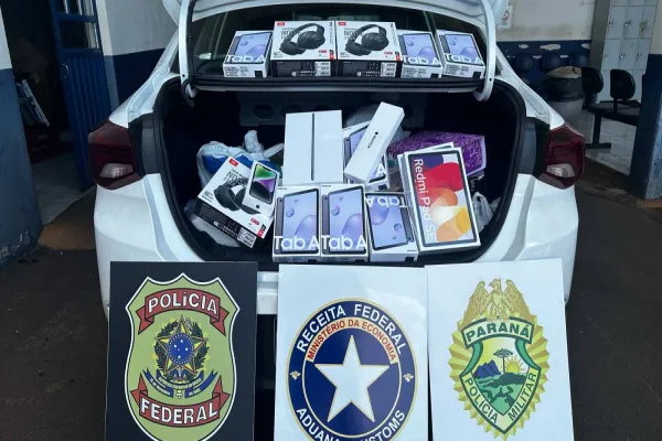 Na tarde desta quinta-feira (27), uma operação conjunta entre a Polícia Federal, a Receita Federal e a Polícia Militar (BPFRON) resultou na apreensão de uma grande quantidade de eletrônicos e outros produtos de origem paraguaia sem comprovação fiscal.