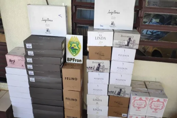 Em dado momento o condutor abandonou o veículo e empreendeu fuga, sendo localizado pelos Policiais Militares. No veículo foram encontrados diversas caixas de vinho de várias marcas.