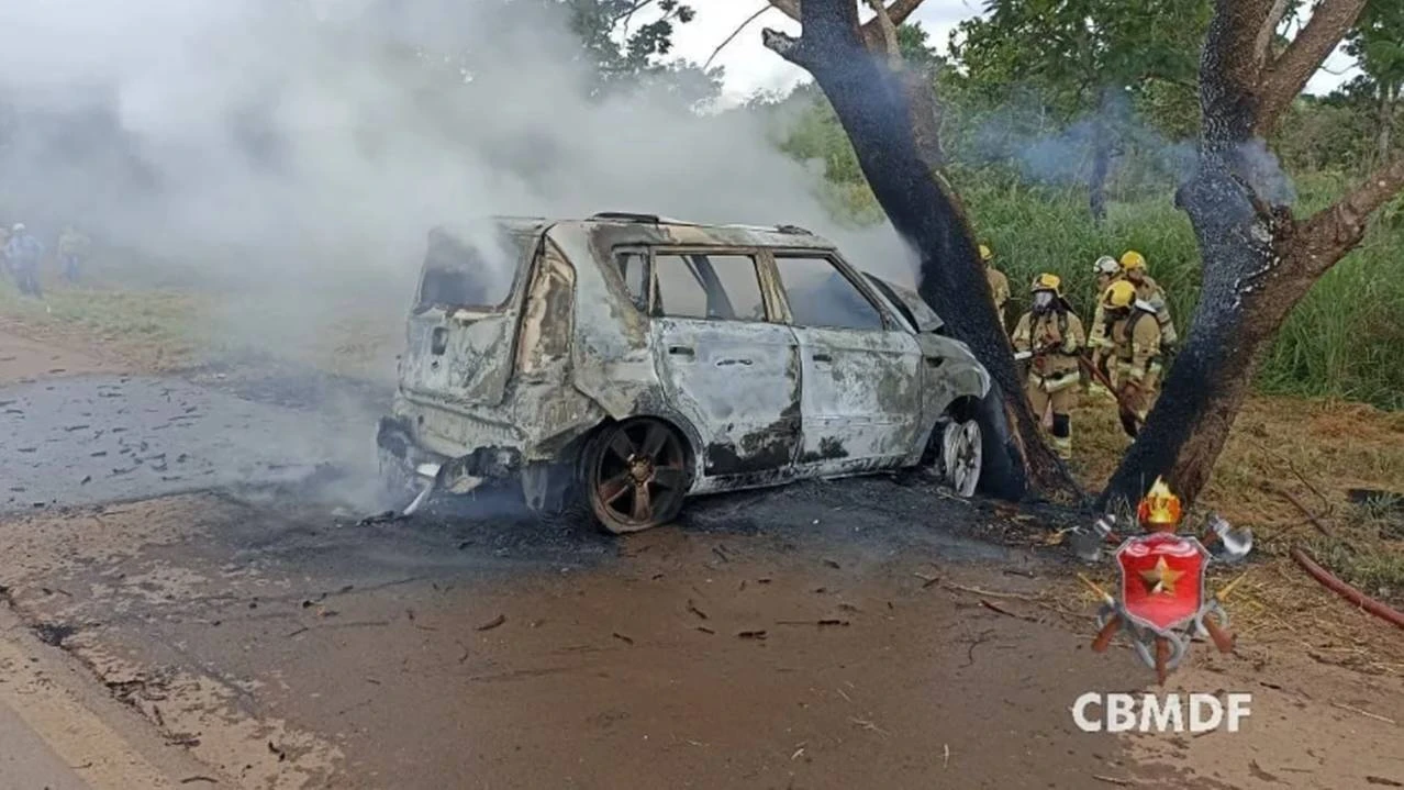 Após o atropelamento, o veículo descontrolado colidiu violentamente contra uma árvore, incendiando-se em seguida. O fogo consumiu o carro por completo, carbonizando o corpo do motorista. Até o momento, a identidade do condutor permanece desconhecida. Devido ao estado do corpo, a Polícia Civil recorrerá a um exame de DNA para identificação.