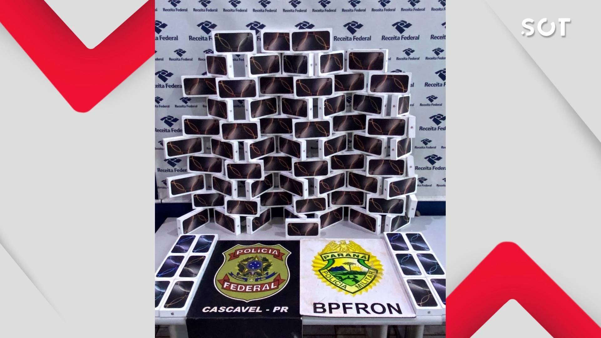 As mercadorias apreendidas incluem duas caixas de cigarros de origem estrangeira, 75 celulares da marca Iphone e 840 baterias de celulares. Os proprietários dos produtos foram identificados, orientados e liberados pelas autoridades. Toda a mercadoria apreendida foi encaminhada para a Receita Federal de Cascavel, onde serão realizados os procedimentos legais cabíveis.