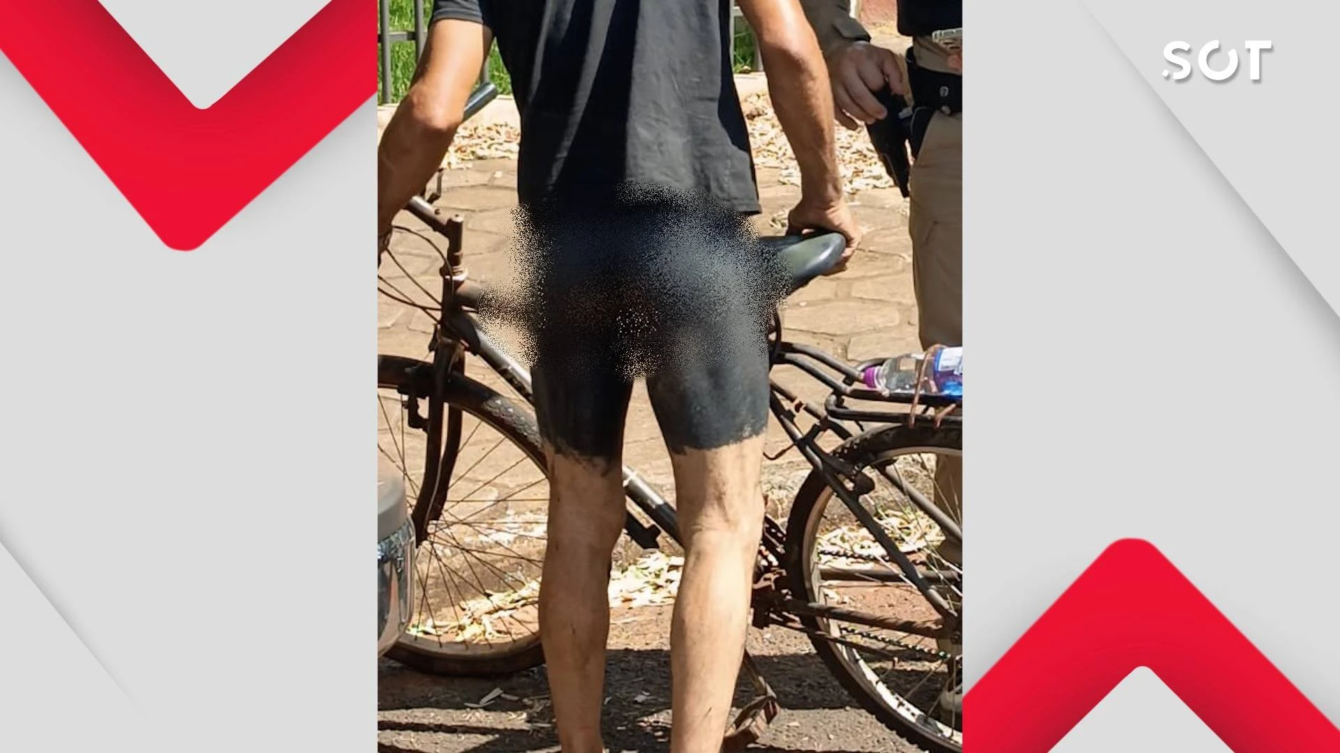 Segundo informações da polícia, o homem foi abordado enquanto circulava de bicicleta, vestindo apenas uma camisa. Para simular o uso de shorts, ele pintou as pernas e as partes íntimas com tinta preta, desenhando a peça de roupa.
