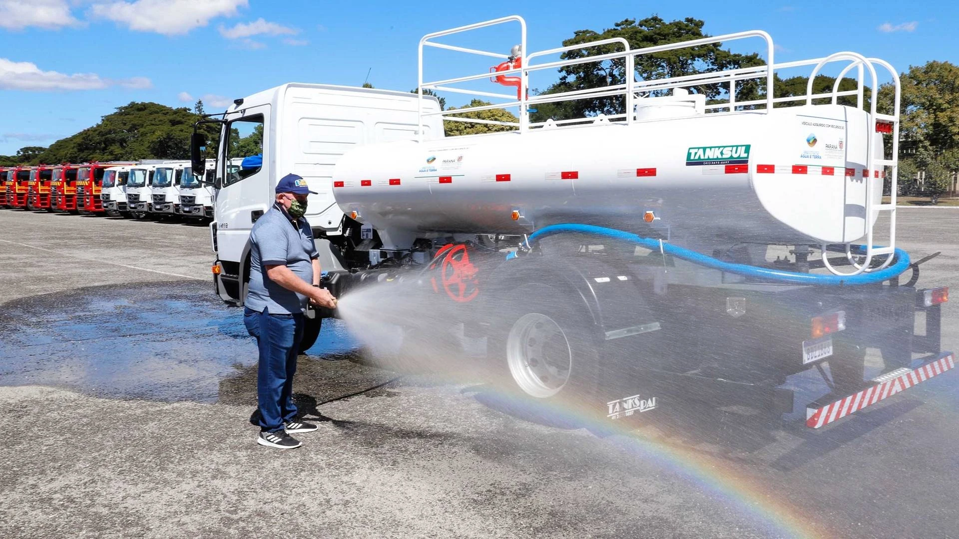 O Paraná ganhou uma importante ferramenta para ajudar no combate a focos de incêndio, no abastecimento de água nas cidades que enfrentam a estiagem e contra a proliferação do coronavírus. O governador Carlos Massa Ratinho Junior entregou nesta quarta-feira (22) 20 de um total de 29 caminhões-pipa que vão atender municípios de diversas regiões do Estado.