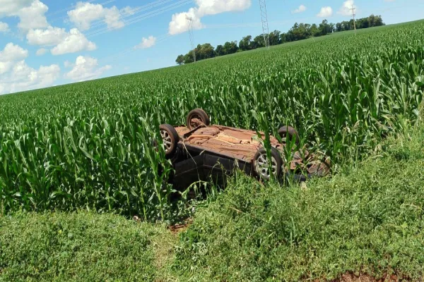 Jovem de 21 anos sofre ferimentos em capotamento na PR-497 em São Miguel do Iguaçu