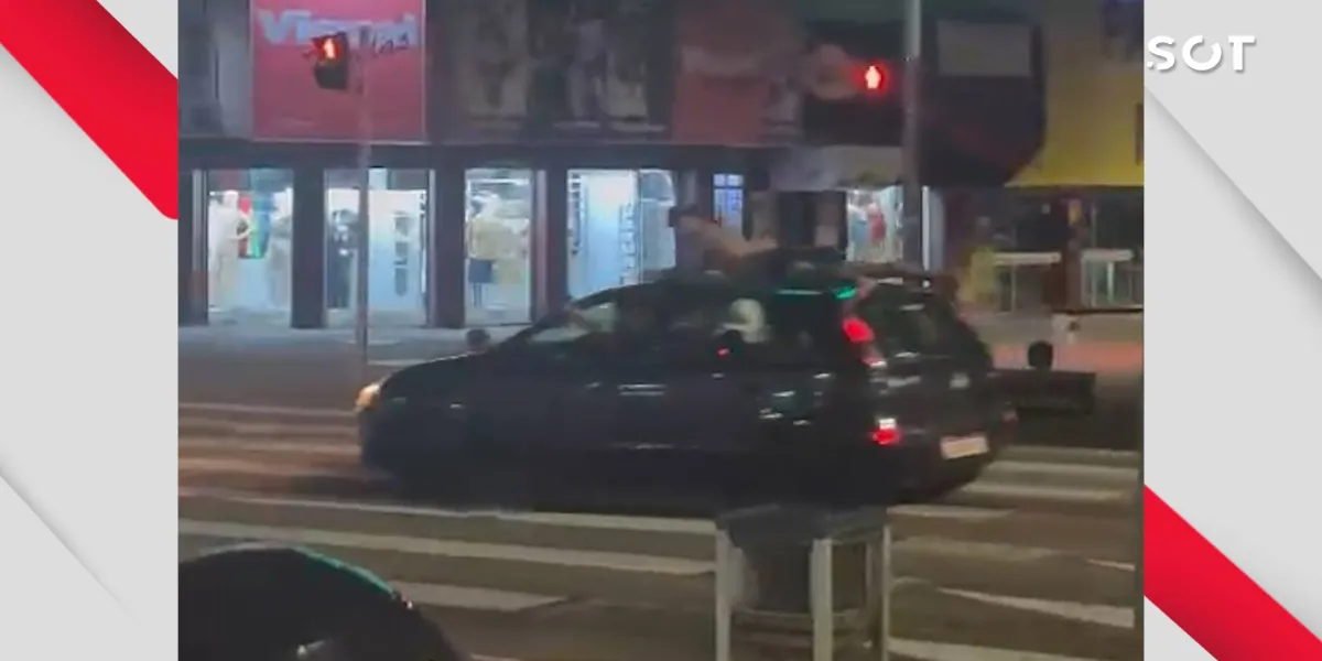 Imprudência no trânsito: Homem é flagrado no capô de carro em movimento no centro de Cascavel