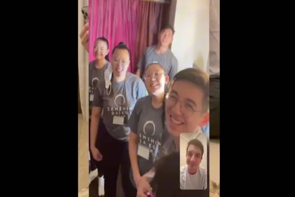 Mecabô fez questão de, ao finalizar a sua agenda da sexta-feira, por volta das 22h, realizar uma chamada de vídeo para o grupo. Na hora da ligação, os jovens cascavelenses integrantes do Zenshin Daiko estavam já na manhã de sábado, ensaiando no quarto do hotel no Japão, na cidade de Oita, na ilha de Kyoshu. Os jovens estão super focados nas últimas horas que antecedem as apresentações.