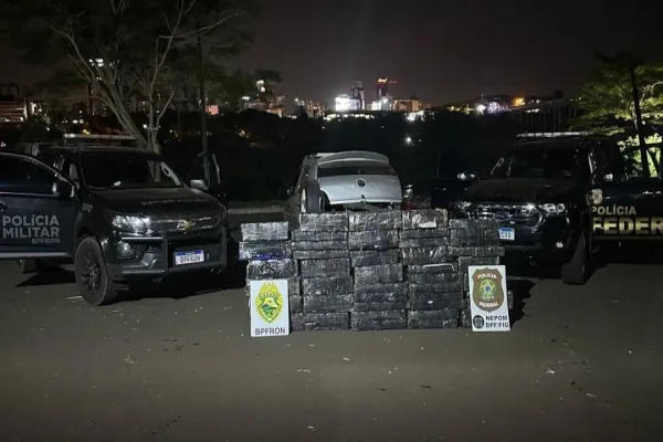 Foz do Iguaçu/PR - Uma ação conjunta entre a Polícia Federal e a Polícia Militar do Paraná resultou na apreensão de 666 quilos de maconha nas margens do Rio Paraná, durante um patrulhamento realizado na madrugada deste sábado (22/03), em Foz do Iguaçu.