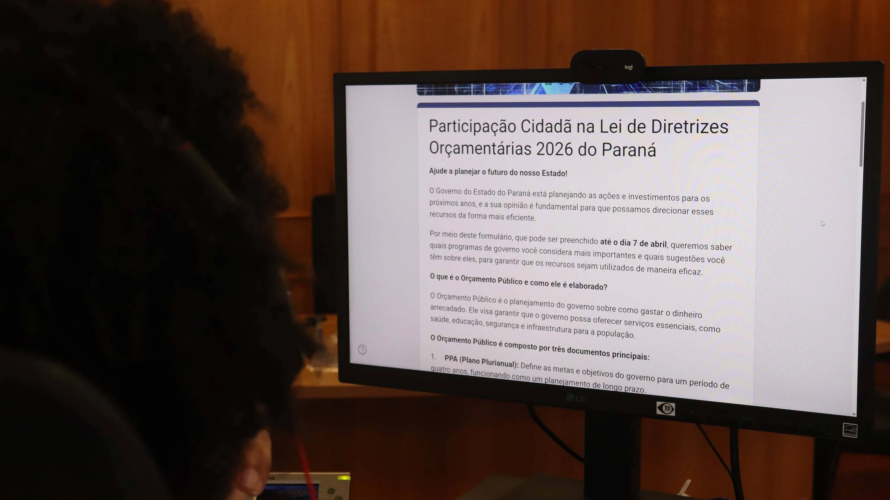 A população paranaense já pode ajudar a elaborar o orçamento do Estado para 2026. A Secretaria de Estado da Fazenda (Sefa) dá início à pesquisa popular para que os cidadãos ajudem a escolher as áreas e programas prioritários que vão fazer parte do Projeto de Lei de Diretrizes Orçamentárias (PLDO) do ano que vem. A secretaria disponibilizou um formulário online para que as pessoas façam as suas sugestões.