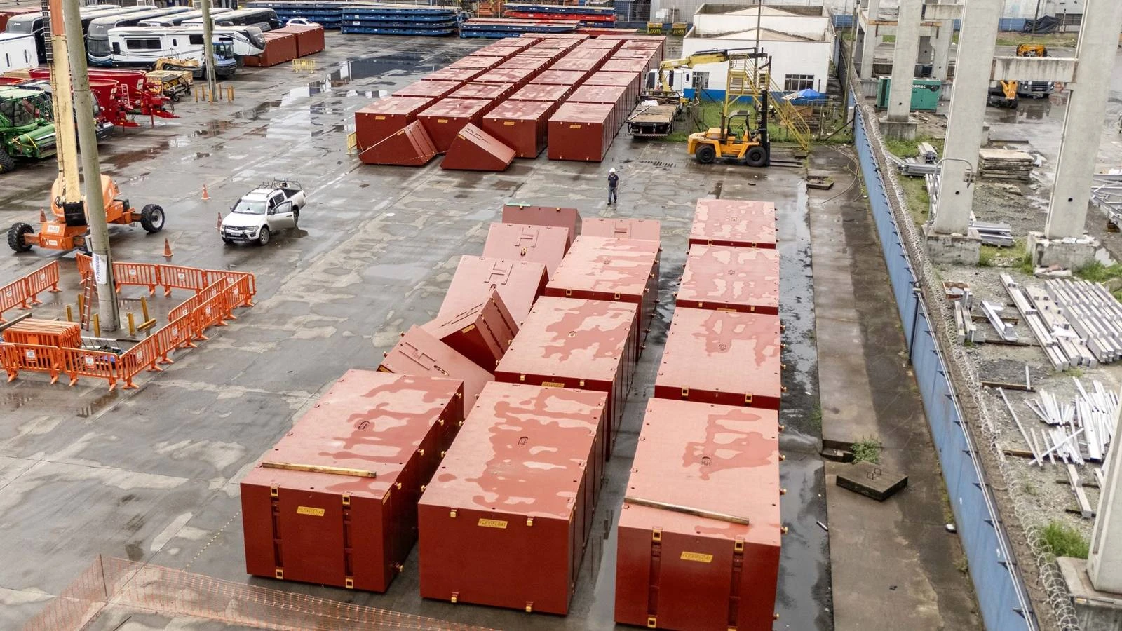 As peças, que chegaram durante o mês de março, estão sendo retiradas do porto por caminhões que pertencem ao Exército. O Terminal de Contêineres de Paranaguá (TCP) é responsável por carregar os módulos nos veículos militares. A operação segue nesses primeiros dias de abril.