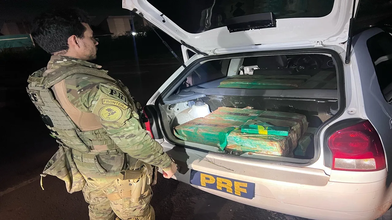 Durante a fiscalização, os agentes encontraram diversos fardos da droga no interior do automóvel, ocupado por um homem de 21 anos e uma adolescente de 16 anos. Segundo relato do condutor, o entorpecente seria levado de Diamante d’Oeste até a cidade de Cascavel.