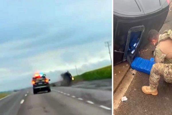 De acordo com a PRF, a equipe do Núcleo de Operações Especiais de Fronteira avistou o automóvel em atitude suspeita e deu ordem de parada, que foi ignorada pelo condutor. Durante a tentativa de fuga, que durou cerca de um quilômetro, o motorista perdeu o controle da direção e o carro acabou tombando sobre a pista.