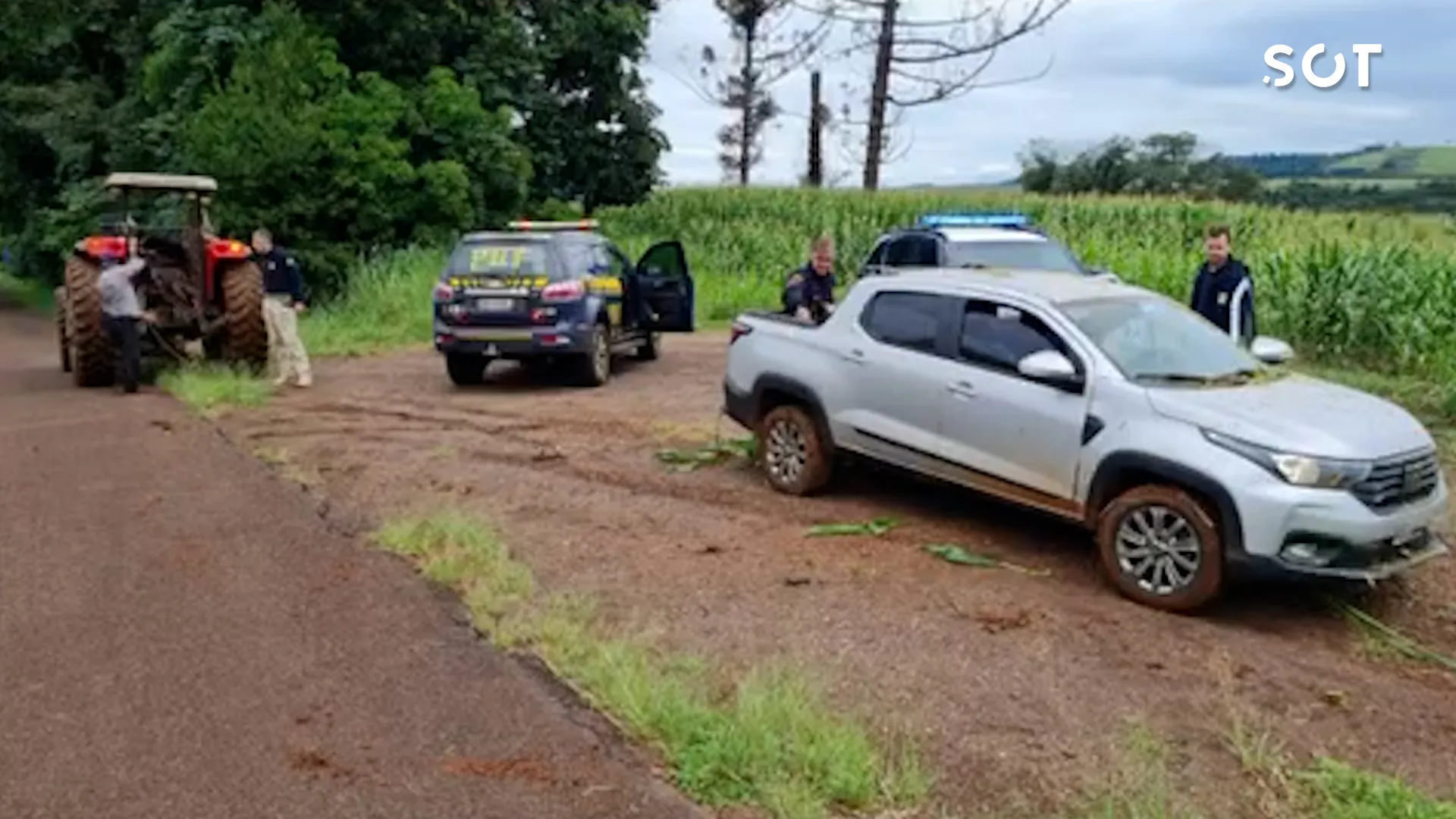 Ocorrência foi registrada em Ubiratã e mobilizou a Receita Federal; carro atolou e precisou ser retirado com trator...