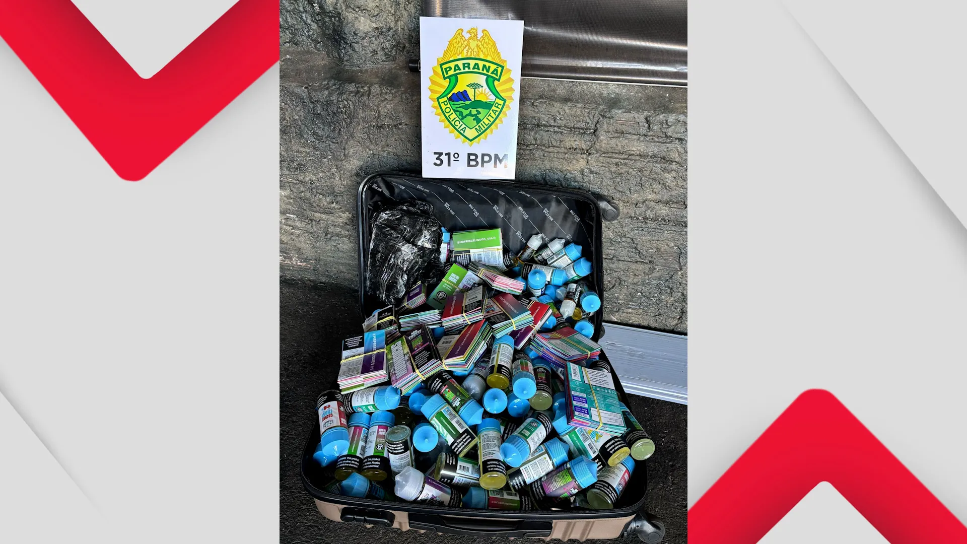 A Patrulha Rural da PM apreendeu, na tarde desta quarta-feira (9), uma mala contendo diversas unidades de cigarros eletrônicos de origem estrangeira e sem documentação fiscal, durante uma abordagem realizada em um ônibus que trafegava pela BR-369, no município de Corbélia, no oeste do Paraná.