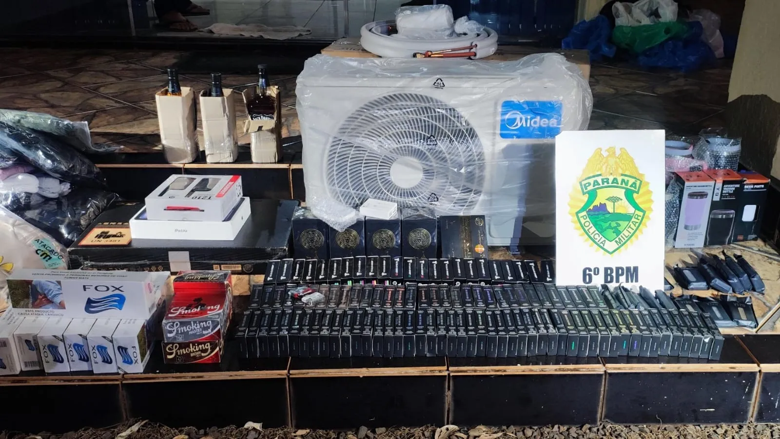 Diante da suspeita, a equipe policial encaminhou o veículo ao Destacamento da Polícia Militar de Três Barras do Paraná para uma revista minuciosa. Na vistoria, foram localizados diversos cigarros eletrônicos, maços de cigarro escondidos em compartimentos improvisados e pneus novos ocultos dentro dos próprios pneus do automóvel.