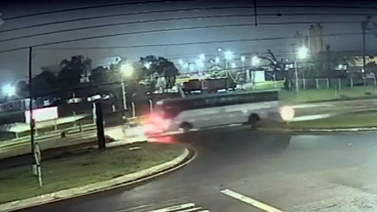 De acordo com informações, o carro seguia pela via marginal e aguardava para atravessar a rodovia quando o motorista decidiu avançar. No momento da travessia, o veículo foi atingido lateralmente por um ônibus que trafegava no sentido Foz do Iguaçu. Imagens de câmeras de segurança mostram que, após a batida, o ônibus ainda arrastou o carro por alguns metros.