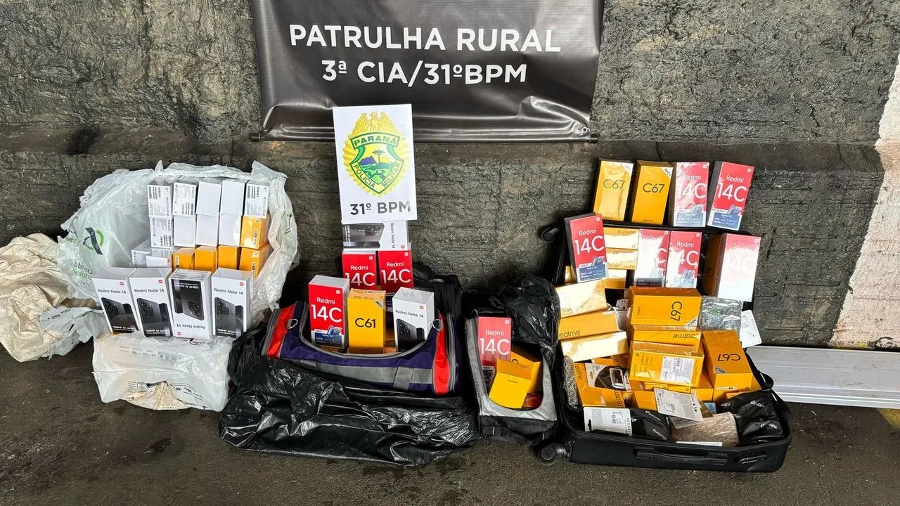 Na manhã de domingo (13), por volta das 10h, a equipe da Patrulha Rural da 3ª Companhia da Polícia Militar realizou uma apreensão de aparelhos celulares de origem estrangeira sem nota fiscal em um ônibus que transitava pela região de Corbélia, no oeste do Paraná. A ação foi resultado de uma denúncia recebida via sistema Sade, informando que indivíduos haviam embarcado malas com produtos ilícitos na rodoviária de Cascavel.