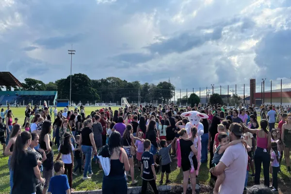 A tarde do último sábado, 19 de abril, foi tomada por alegria, diversão e muito chocolate no Estádio Municipal Paulo Roberto de Souza. A tradicional Caça aos Ovos de Páscoa reuniu mais de 500 crianças, em uma ação lúdica e interativa promovida pela Prefeitura de Corbélia, por meio da Secretaria de Esportes e Lazer.