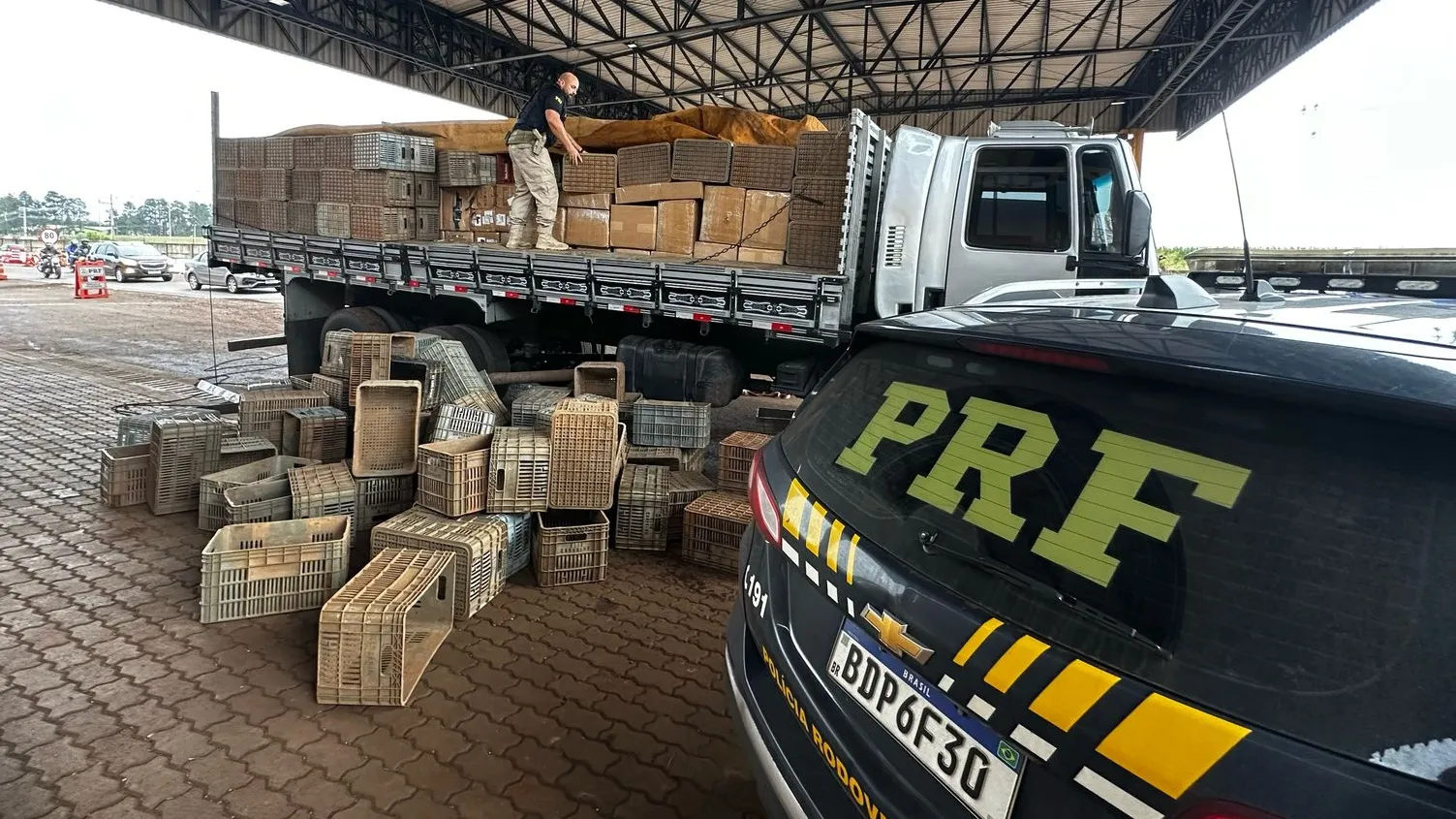 Durante uma fiscalização de rotina na BR-277, os agentes encontraram cerca de 19 mil unidades dos populares "vapes”, que estavam sendo transportadas em um caminhão em meio a caixotes de hortifrúti. Também havia oito placas para servidor, avaliadas em R$ 14 mil cada.