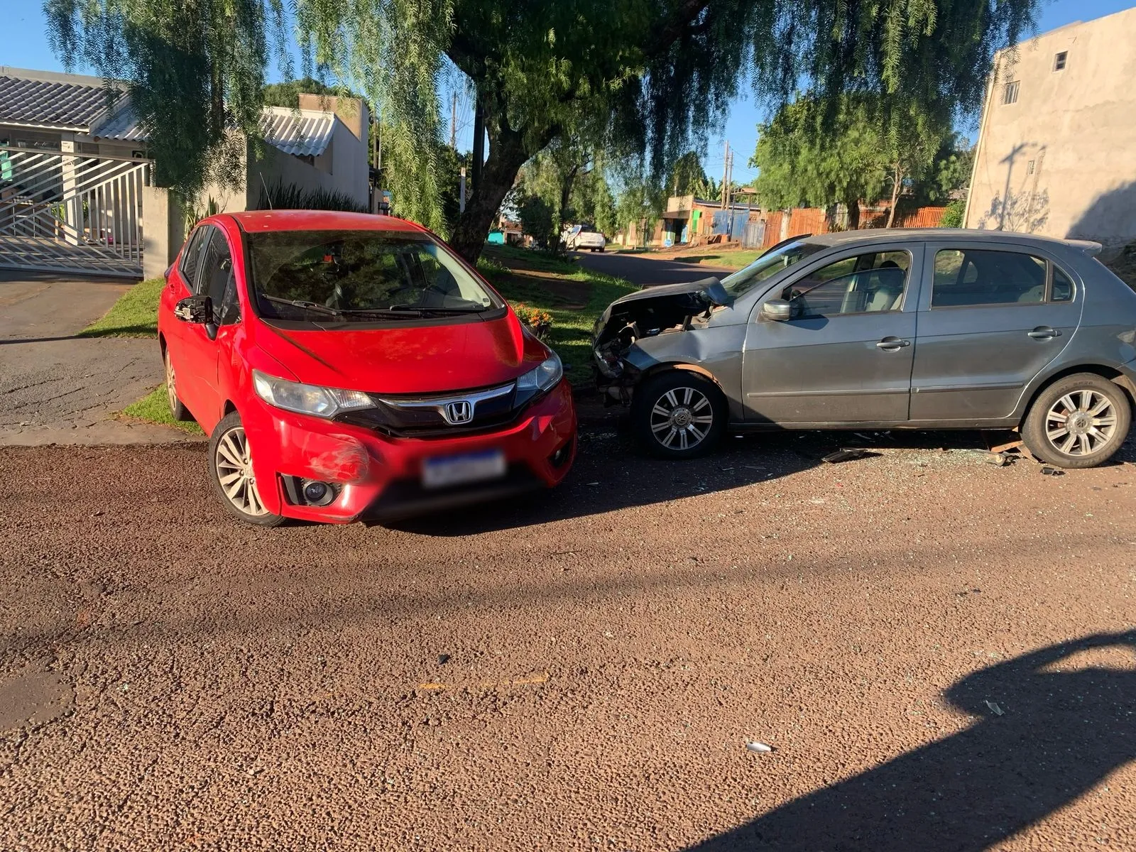 Um forte acidente de trânsito foi registrado na manhã desta quarta-feira (30) no cruzamento da Avenida Harpia com a rua Maracaí, no bairro Jardim Clarito, em Cascavel. A colisão envolveu dois veículos  um Honda Fit e um Volkswagen Gol  que trafegavam por vias diferentes no momento do impacto.
