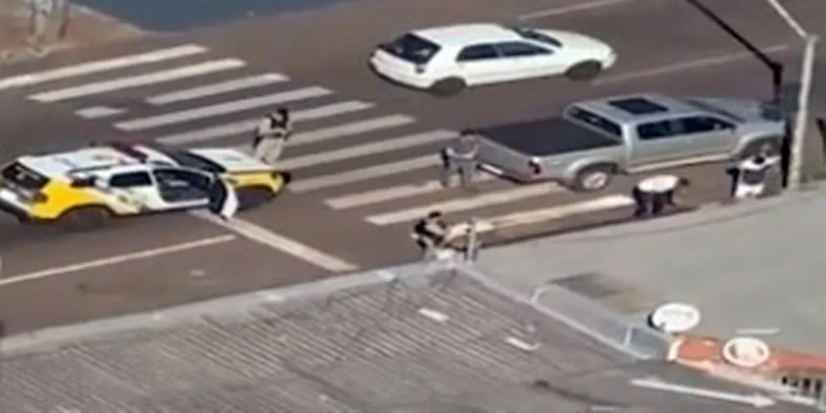 Imagens registradas do alto mostram o momento em que a caminhonete é perseguida e, em seguida, interceptada no perímetro urbano de Cascavel. Os ocupantes foram detidos no local.