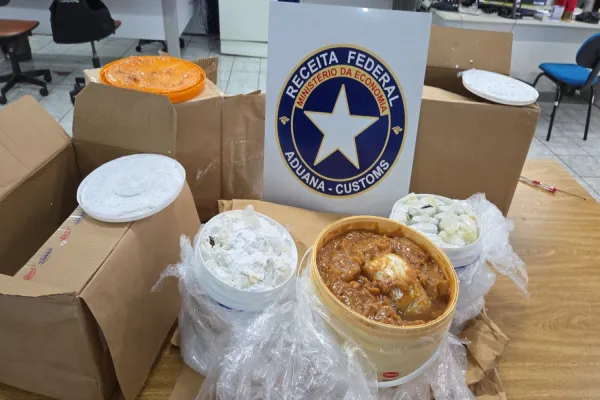 Durante a fiscalização, os agentes encontraram dois grandes pacotes da substância ilícita dentro de um balde de 10 litros que simulava conter doce de leite. Outros 60 pacotes menores estavam ocultos em dois baldes de 3,6 litros rotulados como tinta branca. Para dificultar a detecção, os pacotes menores foram envoltos em preservativos masculinos.